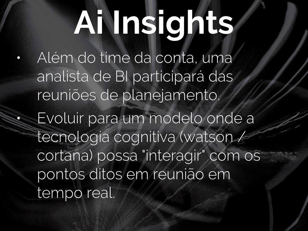 Evoluir para um modelo onde a tecnologia cognitiva (watson / cortana) possa "interagir" com os pontos ditos em reunião em tempo real.