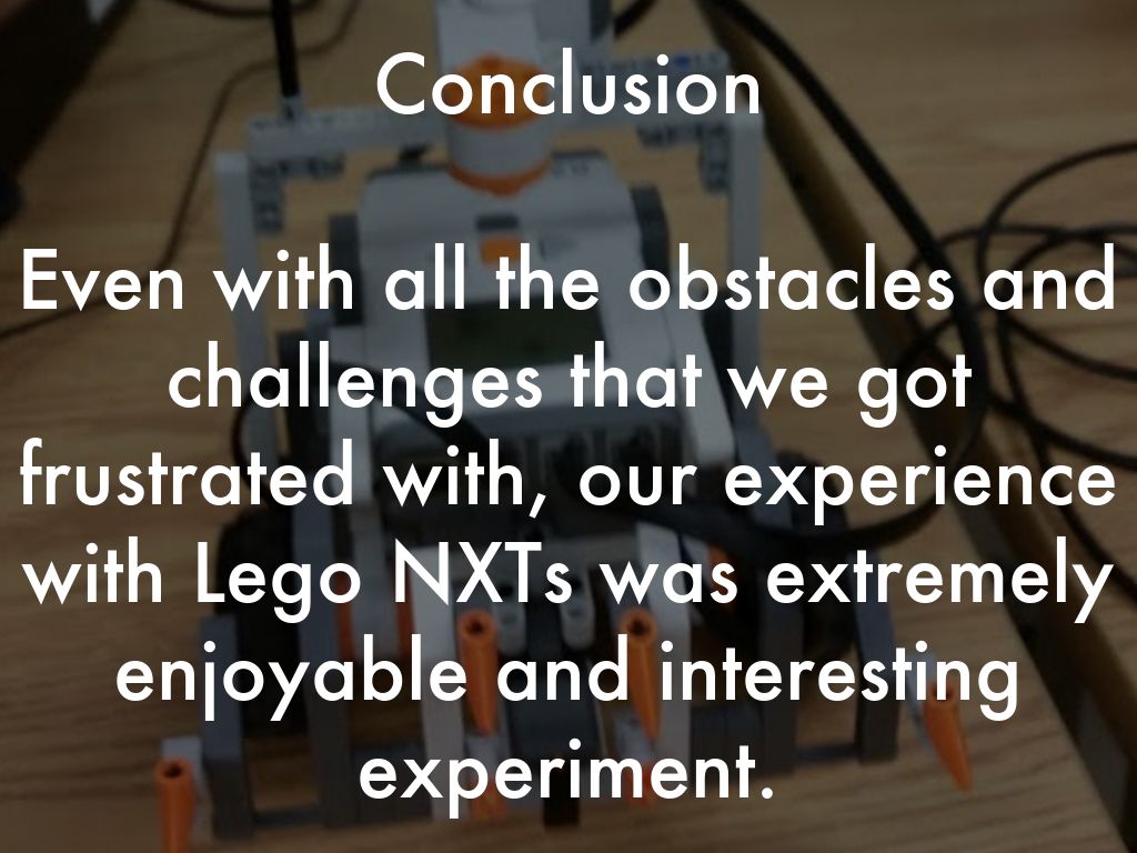 Even with all the obstacles and challenges that we got frustrated with, our experience with Lego NXTs was extremely enjoyable and interesting experiment.
