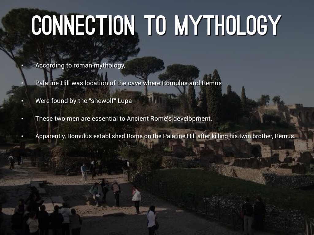 Apparently, Romulus established Rome on the Palatine Hill after killing his twin brother, Remus.