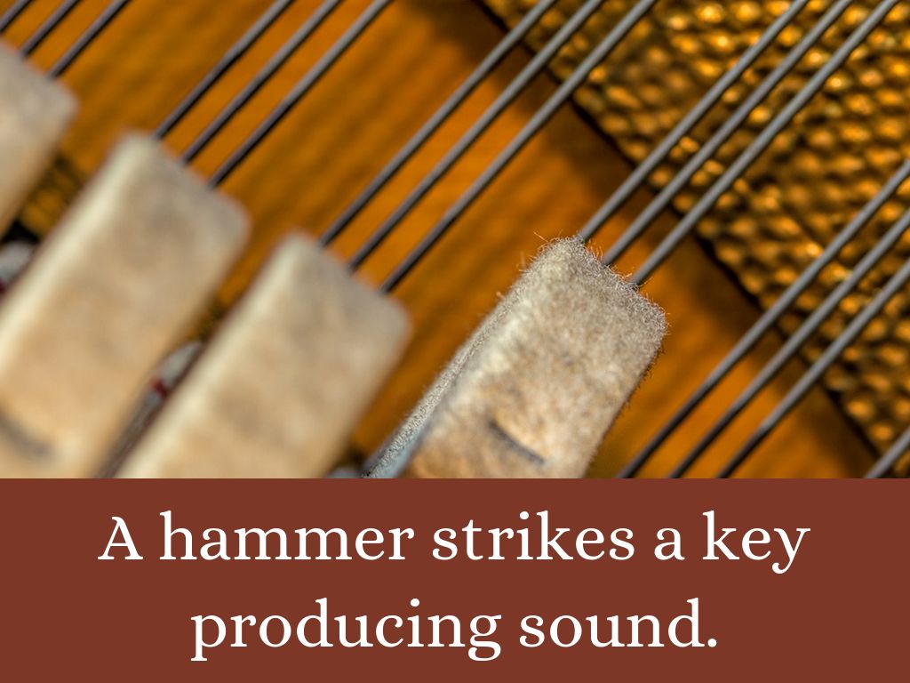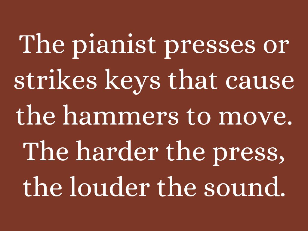 The pianist presses or strikes keys that cause the hammers to move. The harder the press, the louder the sound.