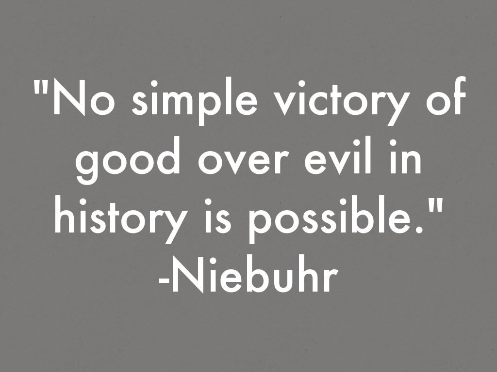 "No simple victory of good over evil in history is possible." -Niebuhr