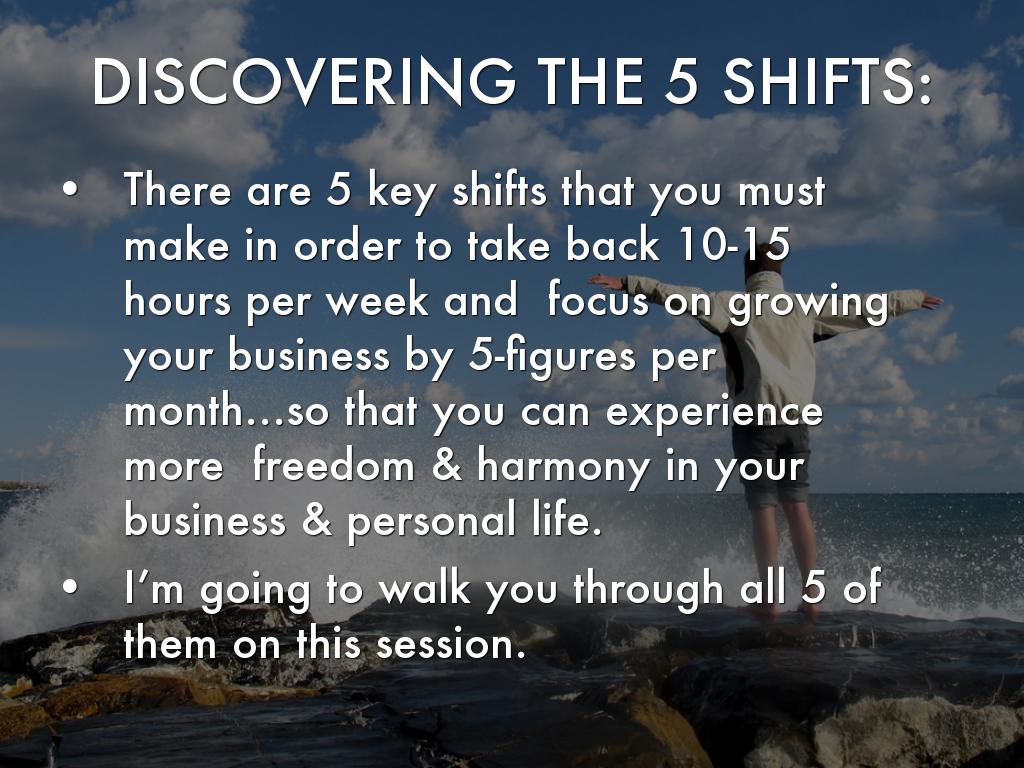 There are 5 key shifts that you must make in order to take back 10-15 hours per week and