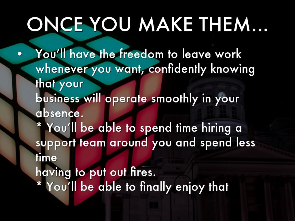 * You’ll be able to spend time hiring a support team around you and spend less time