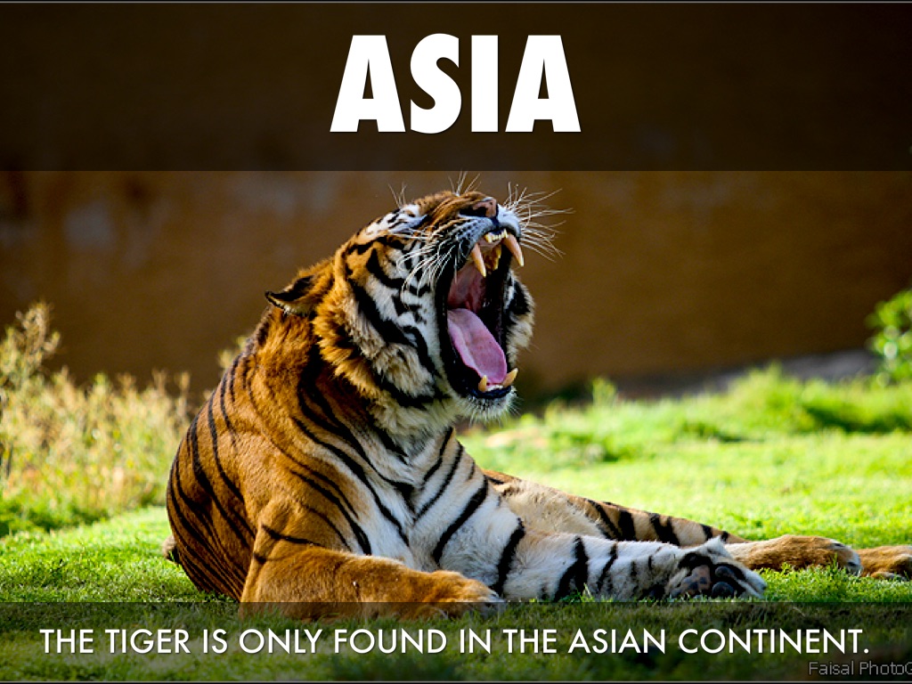 THE TIGER IS ONLY FOUND IN THE ASIAN CONTINENT.