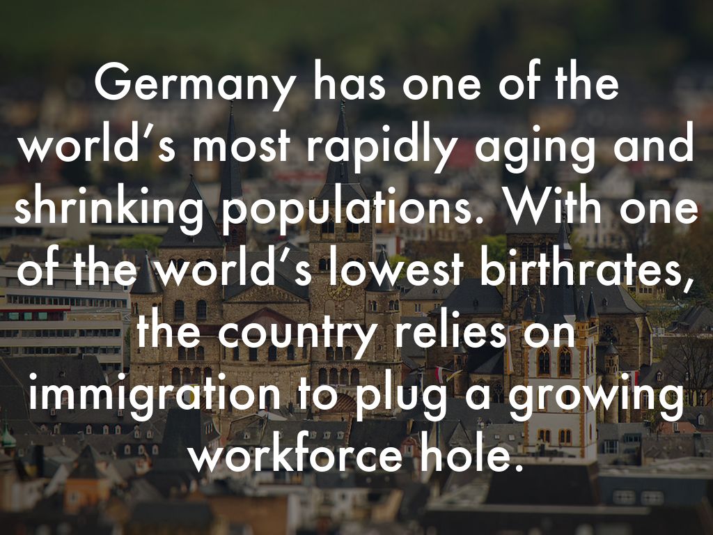Germany has one of the world’s most rapidly aging and shrinking populations. With one of the world’s lowest birthrates, the country relies on immigration to plug a growing workforce hole.