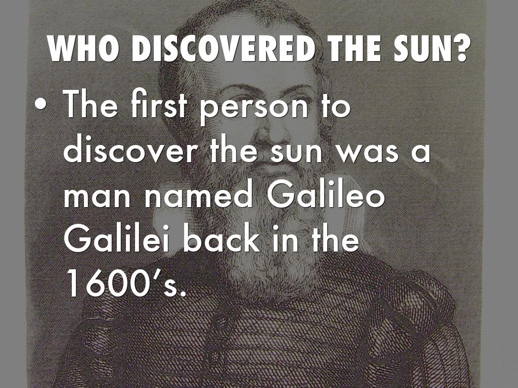 The first person to discover the sun was a man named Galileo Galilei back in the 1600’s.