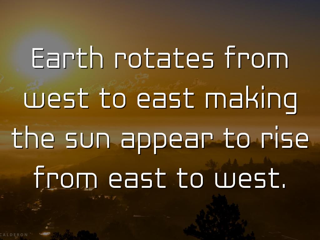 Earth rotates from west to east making the sun appear to rise from east to west.