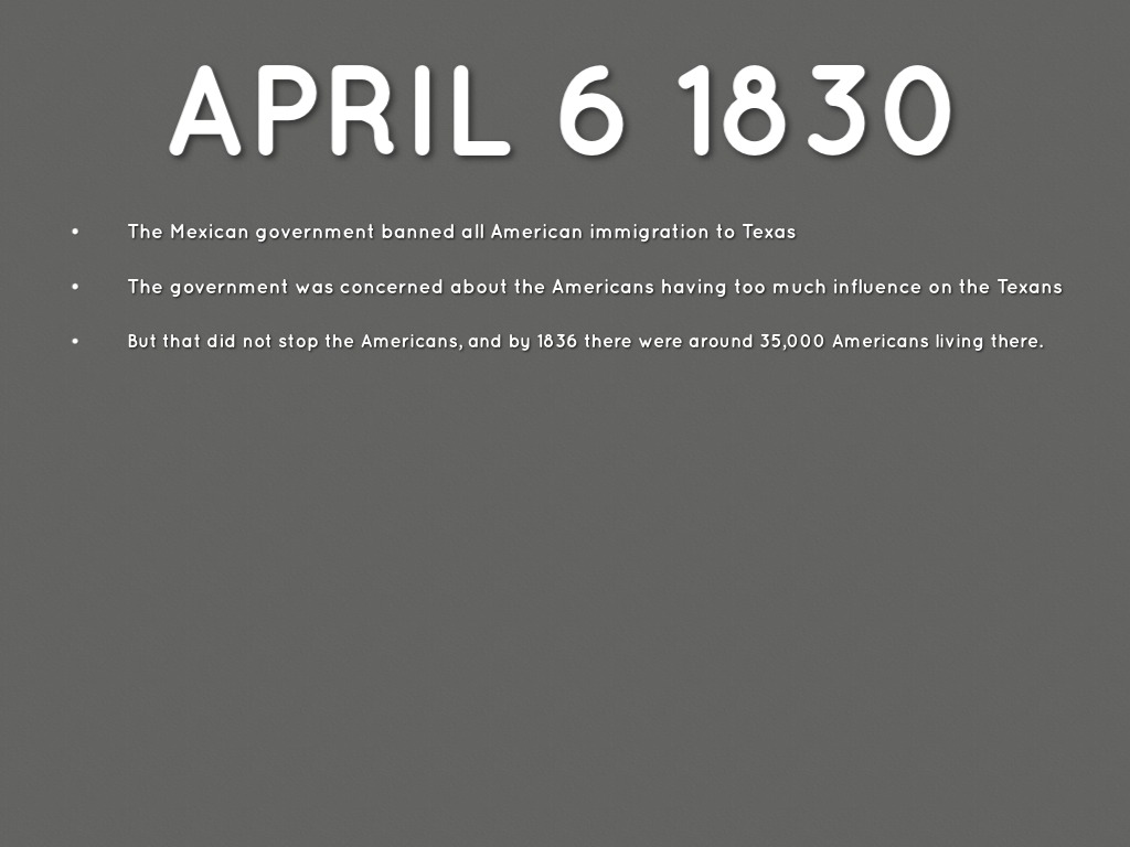But that did not stop the Americans, and by 1836 there were around 35,000 Americans living there.