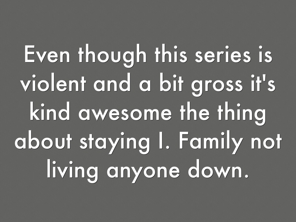 Even though this series is violent and a bit gross it's kind awesome the thing about staying I. Family not living anyone down.