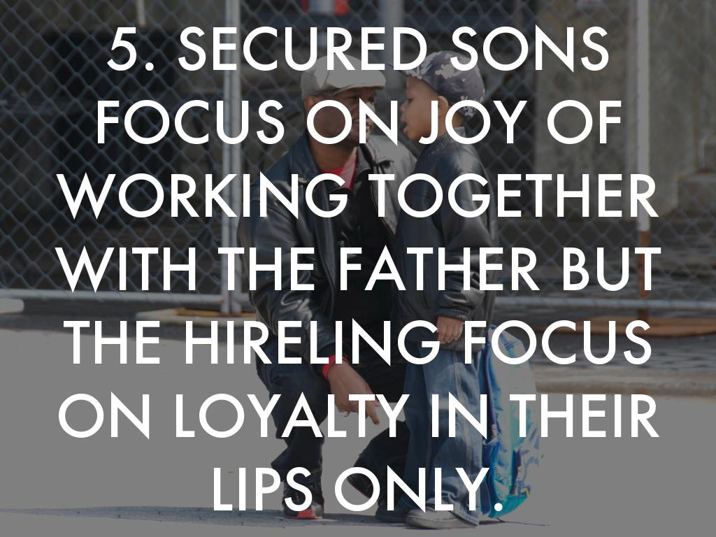 5. SECURED SONS FOCUS ON JOY OF WORKING TOGETHER WITH THE FATHER BUT THE HIRELING FOCUS ON LOYALTY IN THEIR LIPS ONLY.