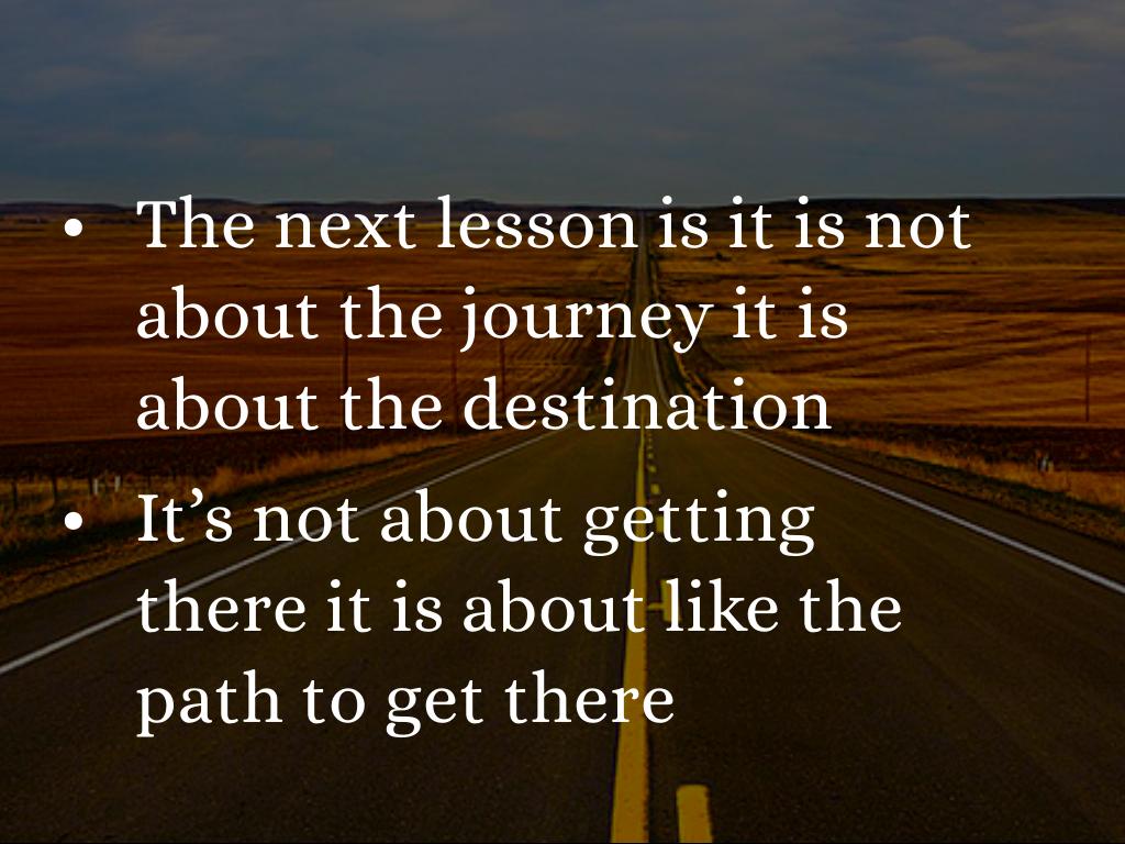 The next lesson is it is not about the journey it is about the destination