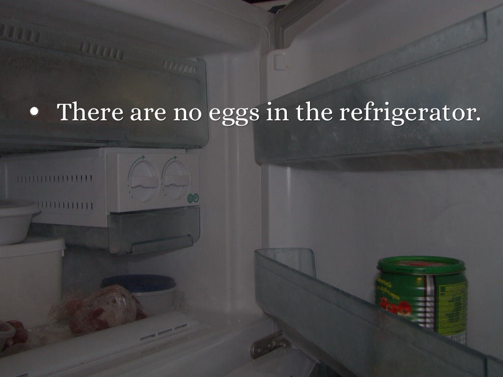 ______ no eggs in the refrigerator.