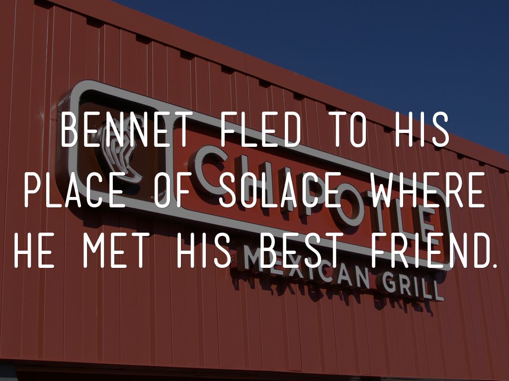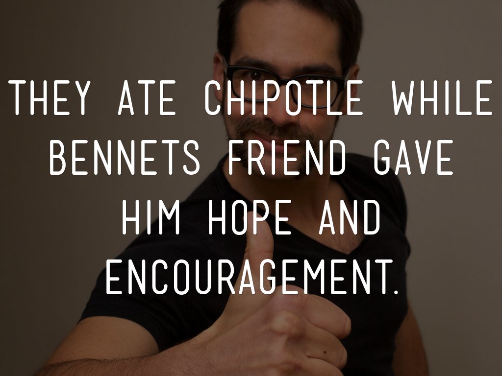 They ate chipotle while Bennets friend gave him hope and encouragement.