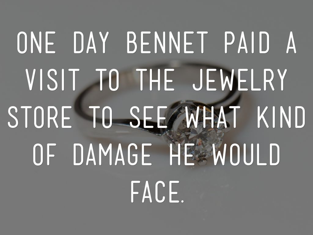 one day Bennet paid a visit to the jewelry store to see what kind of damage he would face.