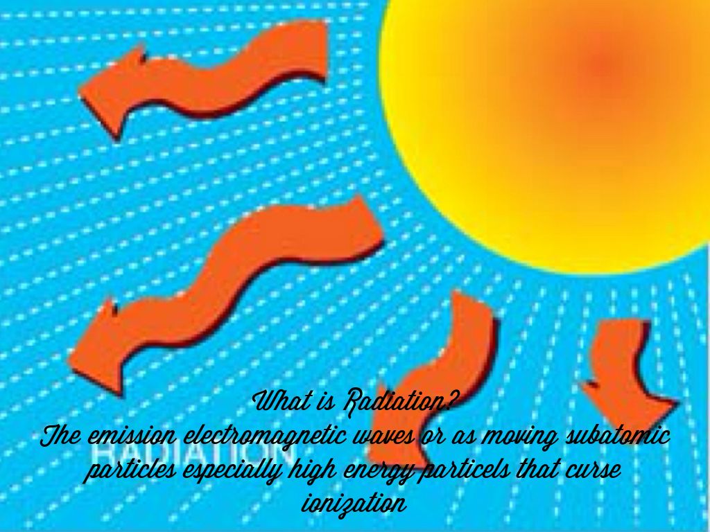 The emission electromagnetic waves or as moving subatomic particles especially high energy particels that curse ionization