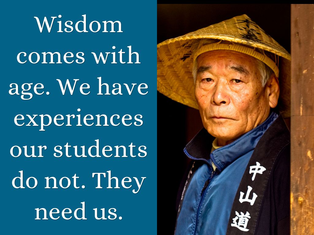 Wisdom comes with age. We have experiences our students do not. They need us.