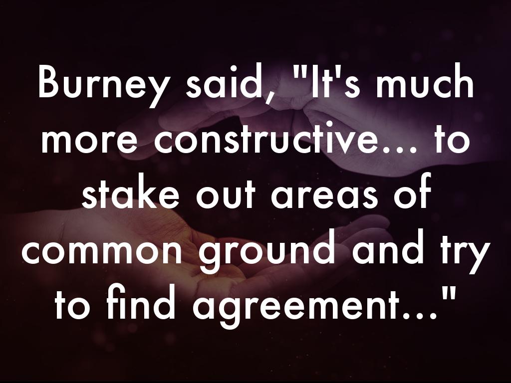 Burney said, "It's much more constructive... to stake out areas of common ground and try to find agreement..."