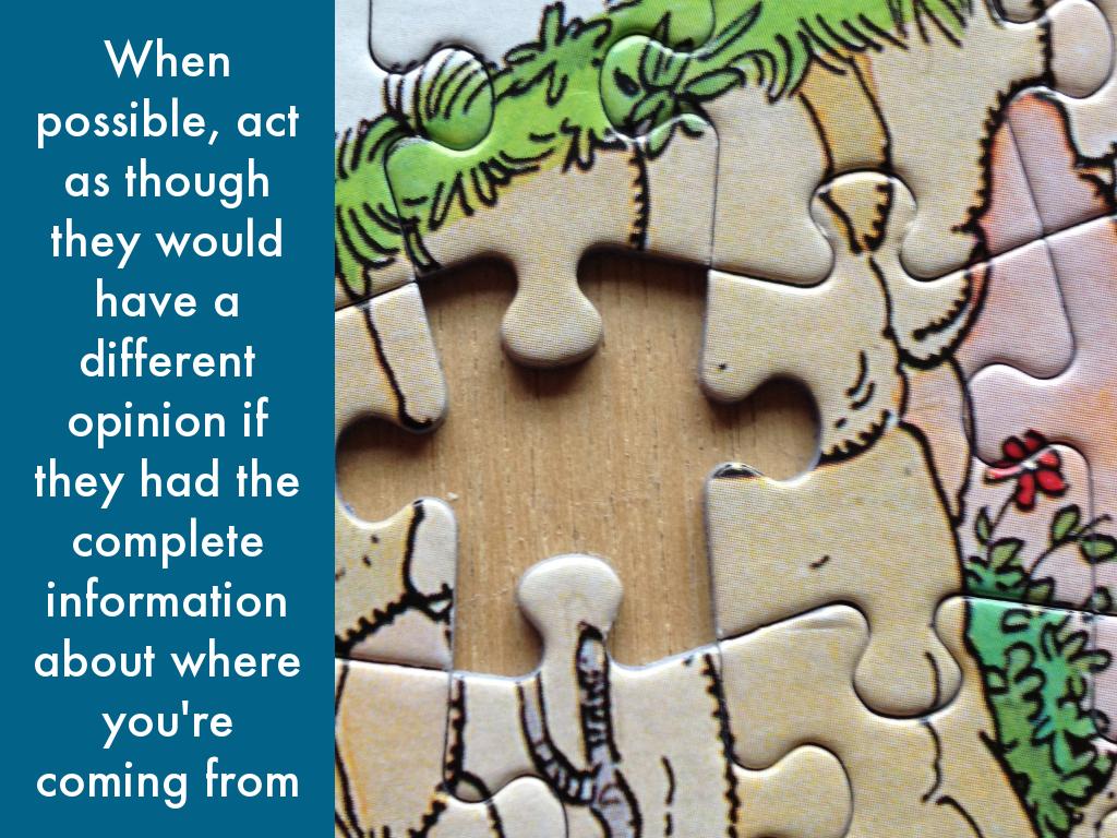 When possible, act as though they would have a different opinion if they had the complete information about where you're coming from