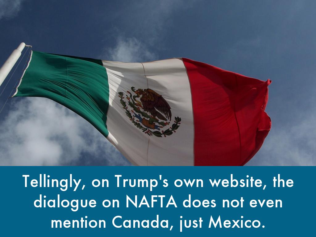 Tellingly, on Trump's own website, the dialogue on NAFTA does not even mention Canada, just Mexico.