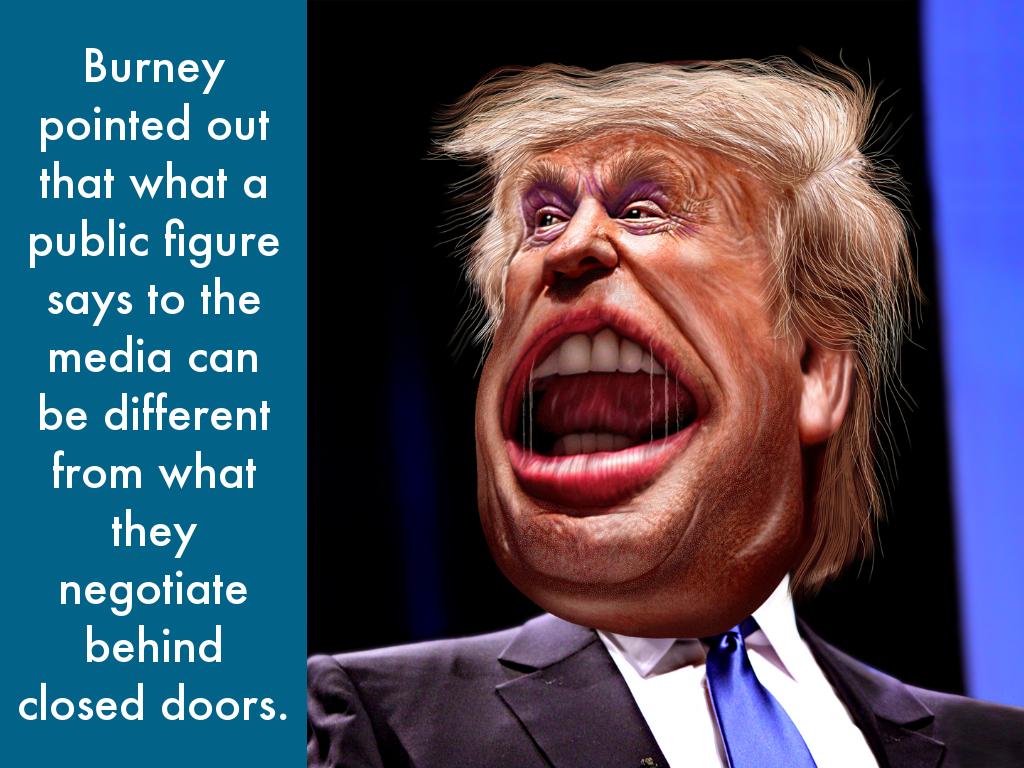 Burney pointed out that what a public figure says to the media can be different from what they negotiate behind closed doors.