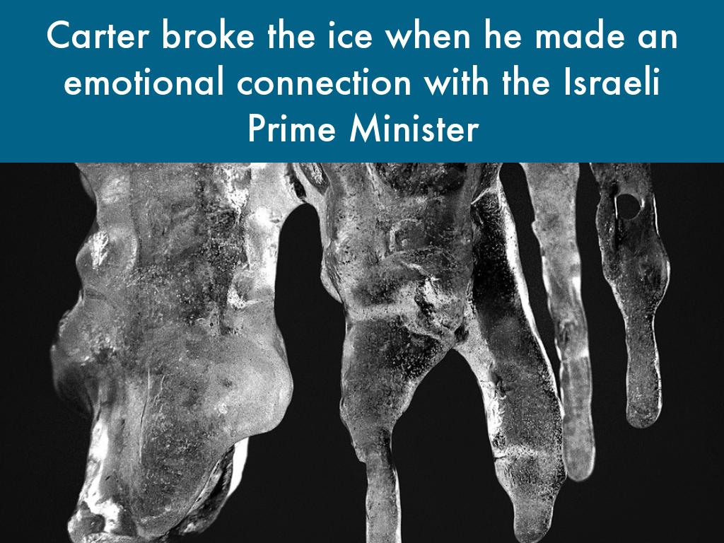 Carter broke the ice when he made an emotional connection with the Israeli Prime Minister