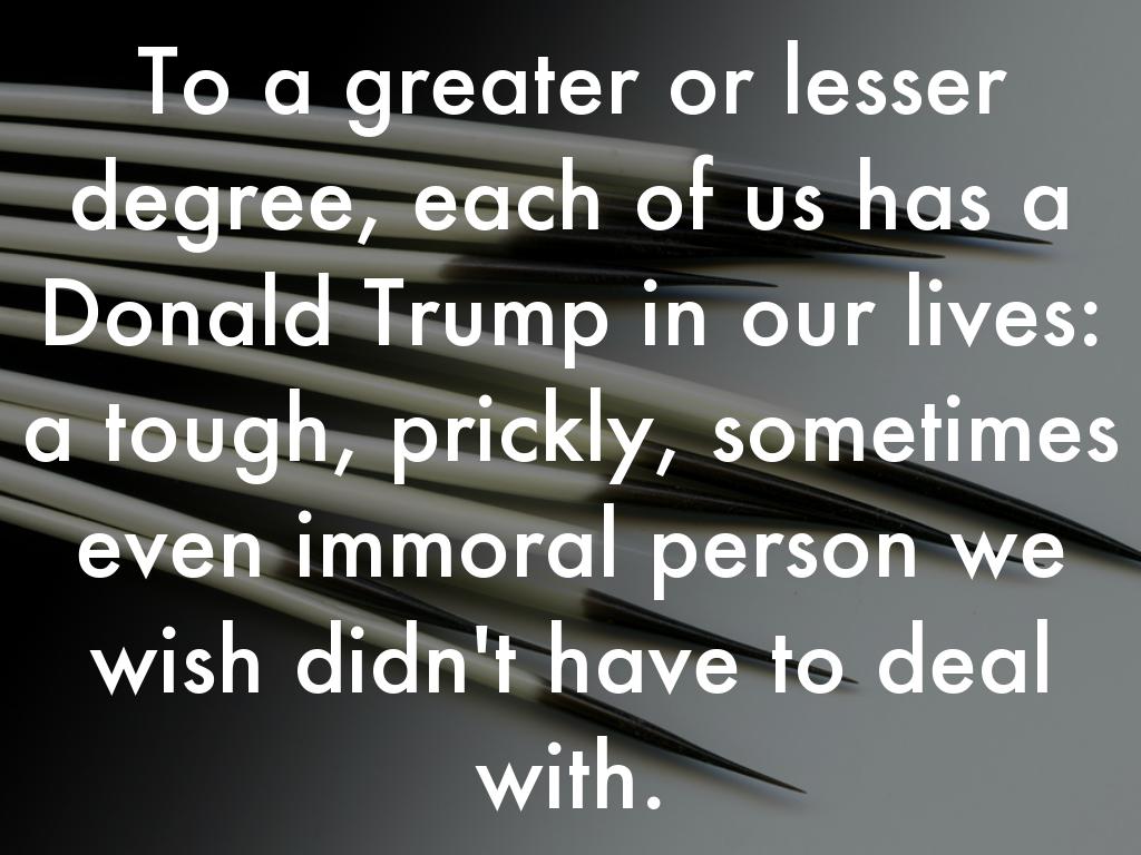 To a greater or lesser degree, each of us has a Donald Trump in our lives: a tough, prickly, sometimes even immoral person we wish didn't have to deal with.