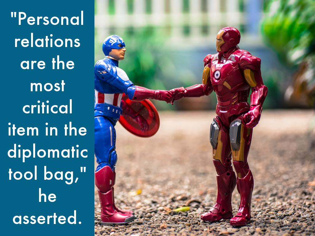 "Personal relations are the most critical item in the diplomatic tool bag," he asserted.