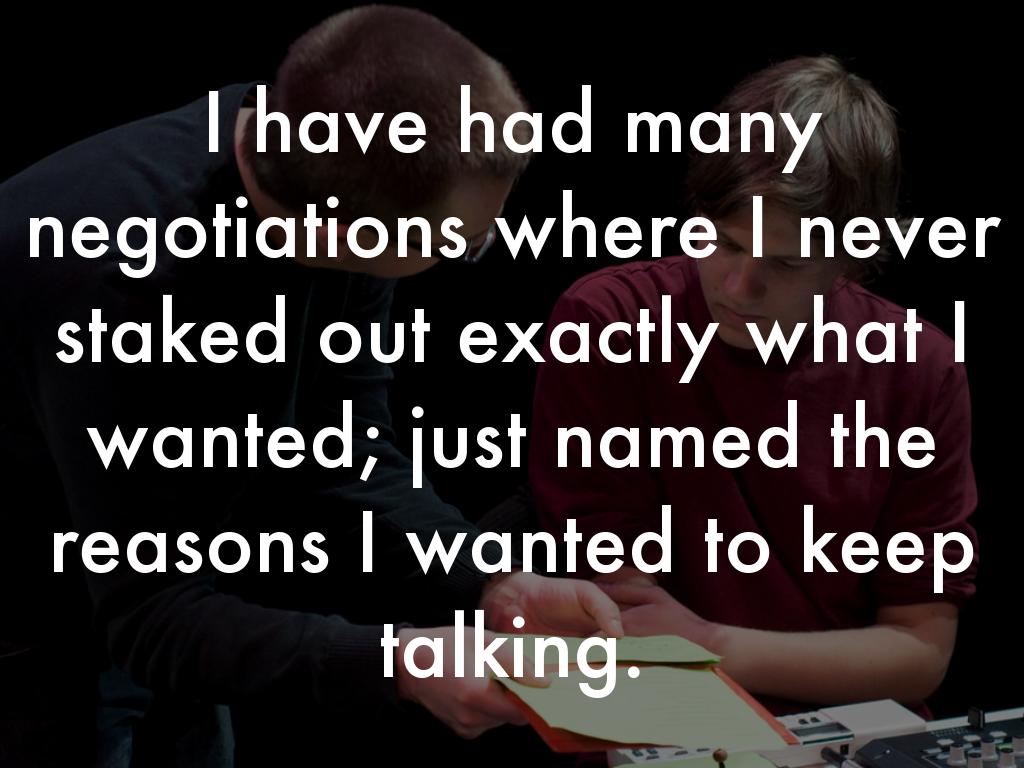 I have had many negotiations where I never staked out exactly what I wanted; just named the reasons I wanted to keep talking.