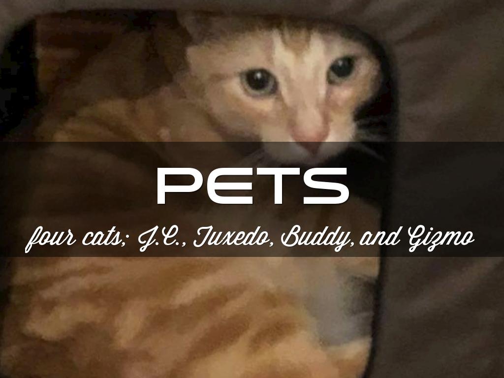 four cats; J.C., Tuxedo, Buddy, and Gizmo
