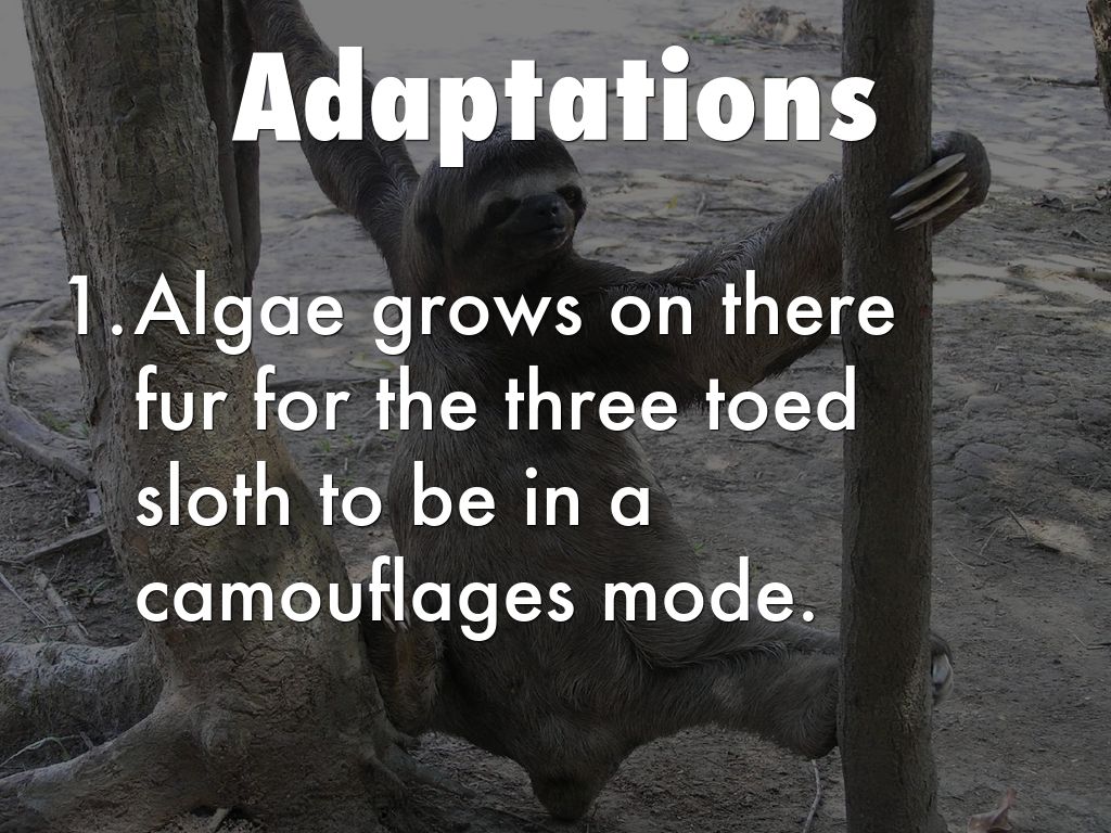 Algae grows on there fur for the three toed sloth to be in a camouflages mode.