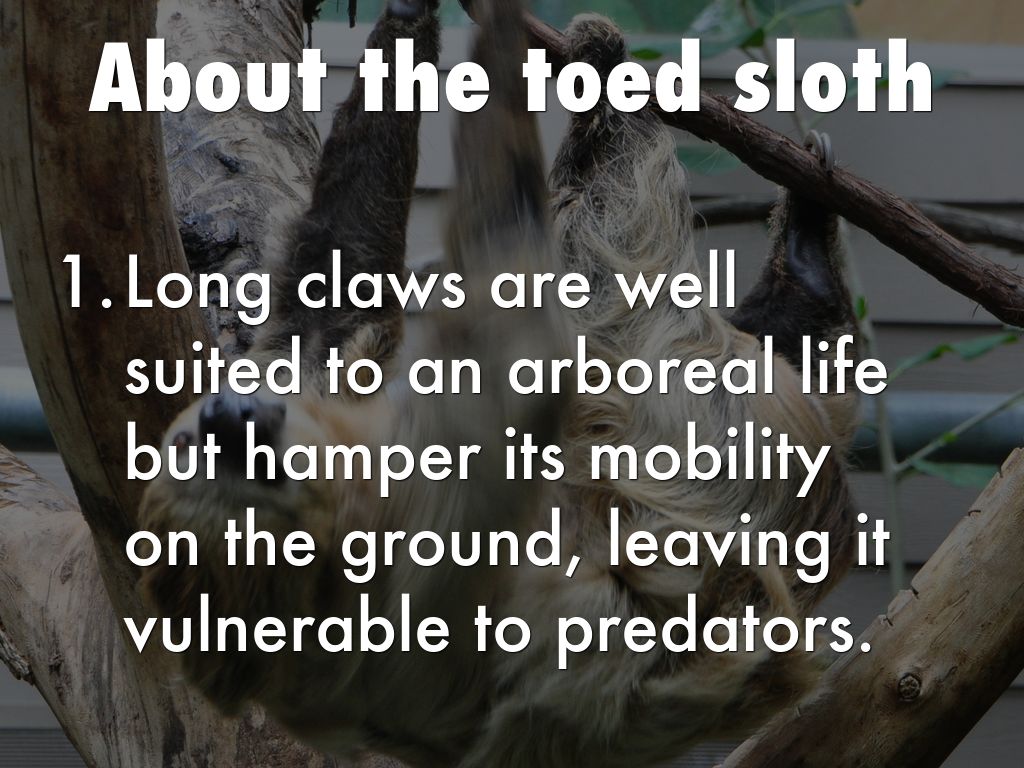 Long claws are well suited to an arboreal life but hamper its mobility on the ground, leaving it vulnerable to predators.