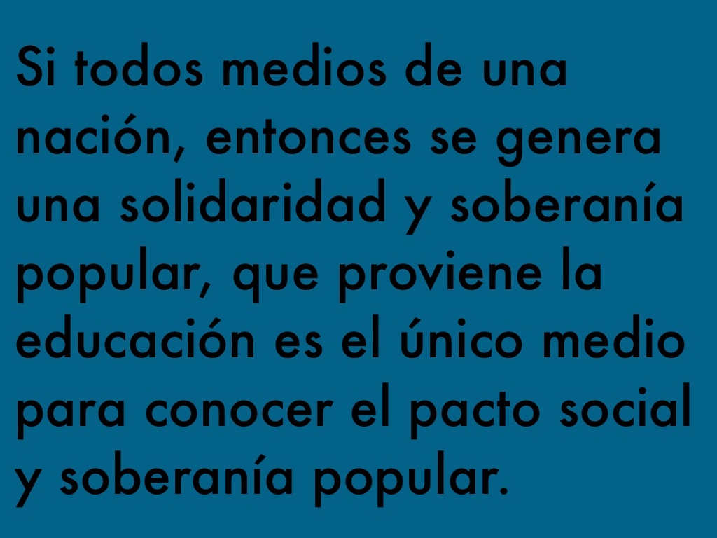 Si todos medios de una nación, entonces se genera una solidaridad y soberanía popular, que proviene la educación es el único medio para conocer el pacto social y soberanía popular.