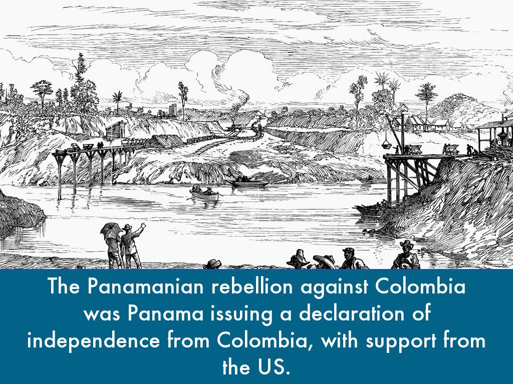 The Panamanian rebellion against Colombia was Panama issuing a declaration of independence from Colombia, with support from the US.