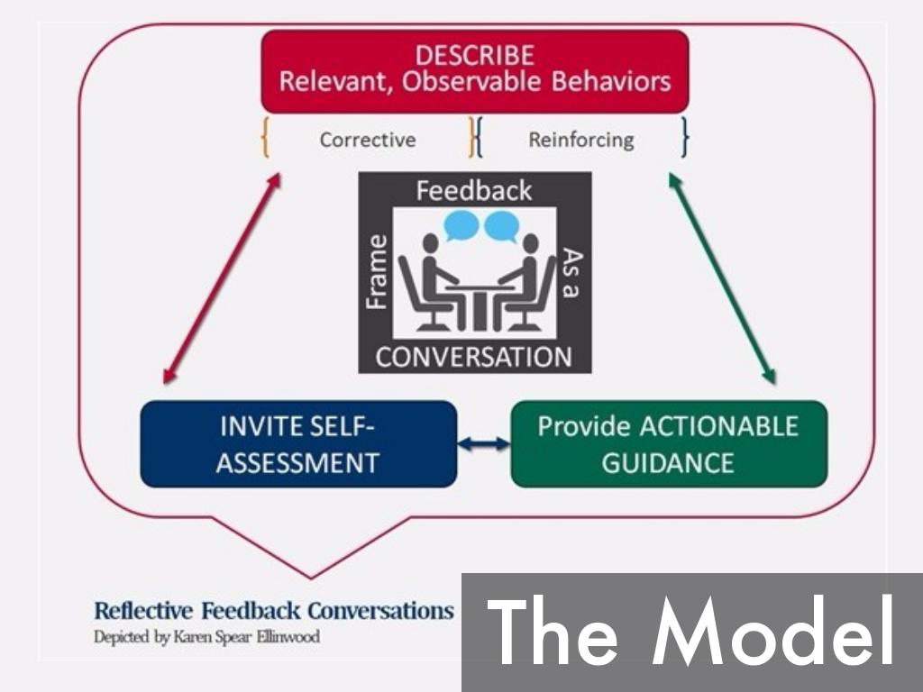 This presentation outlines the essential components of engaging learners (medical students or residents) in reflective feedback conversations, a model developed by Cantillon & Sargeant (2008). The presentation promotes a unique application of this model by integrating BDA (Vacca & Vacca, 2008) and RIME (Pangaro, 1999) to structure teaching and anchor formative feedback. Author: Karen Spear Ellinwood, PhD, JD, EdS, Director, Faculty Instructional Development, Residents as Educators Program; Assistant Professor, Department of Obstetrics and Gynecology, University of Arizona College of Medicine.