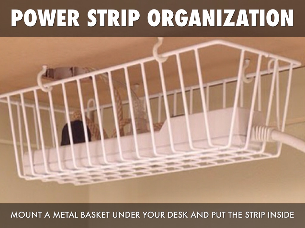 MOUNT A METAL BASKET UNDER YOUR DESK AND PUT THE STRIP INSIDE