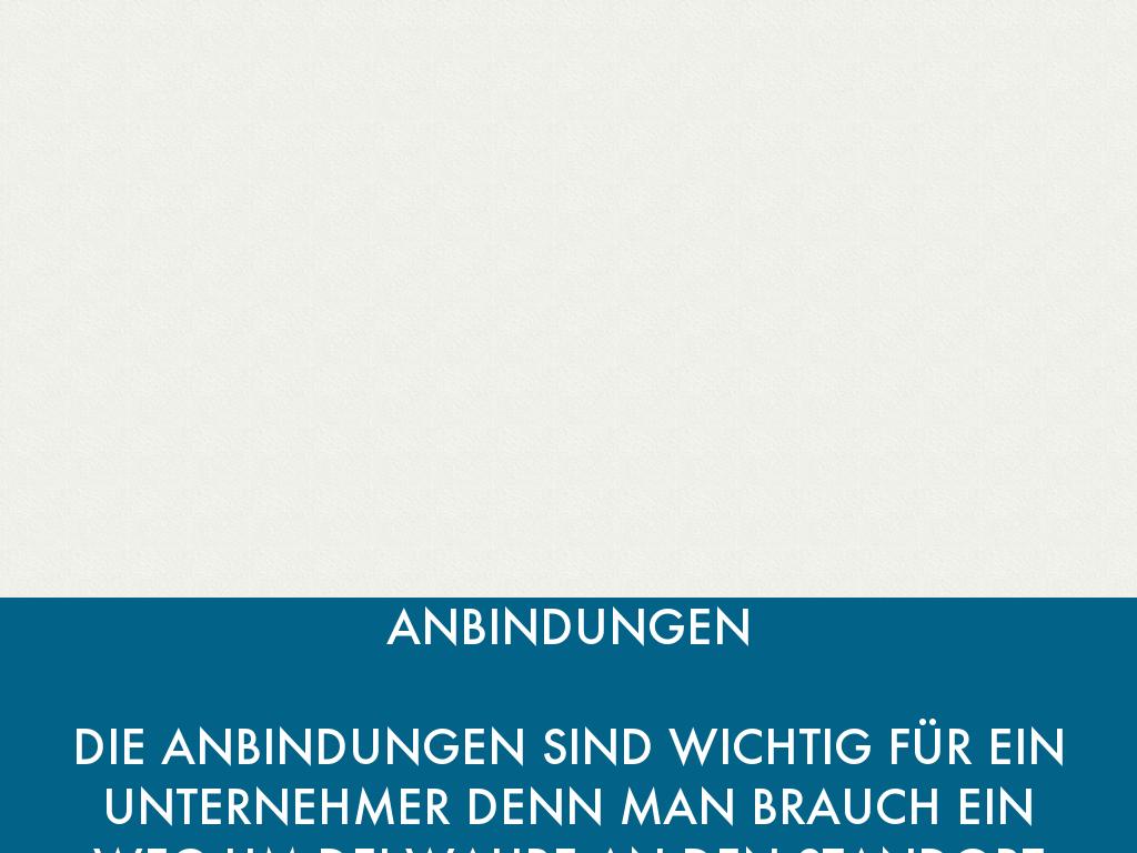 DIE ANBINDUNGEN SIND WICHTIG FÜR EIN UNTERNEHMER DENN MAN BRAUCH EIN WEG UM DEI WAHRE AN DEN STANDORT ZU BEKOMMEN ODER ZUR PRODUKTIONSSTÄTTE