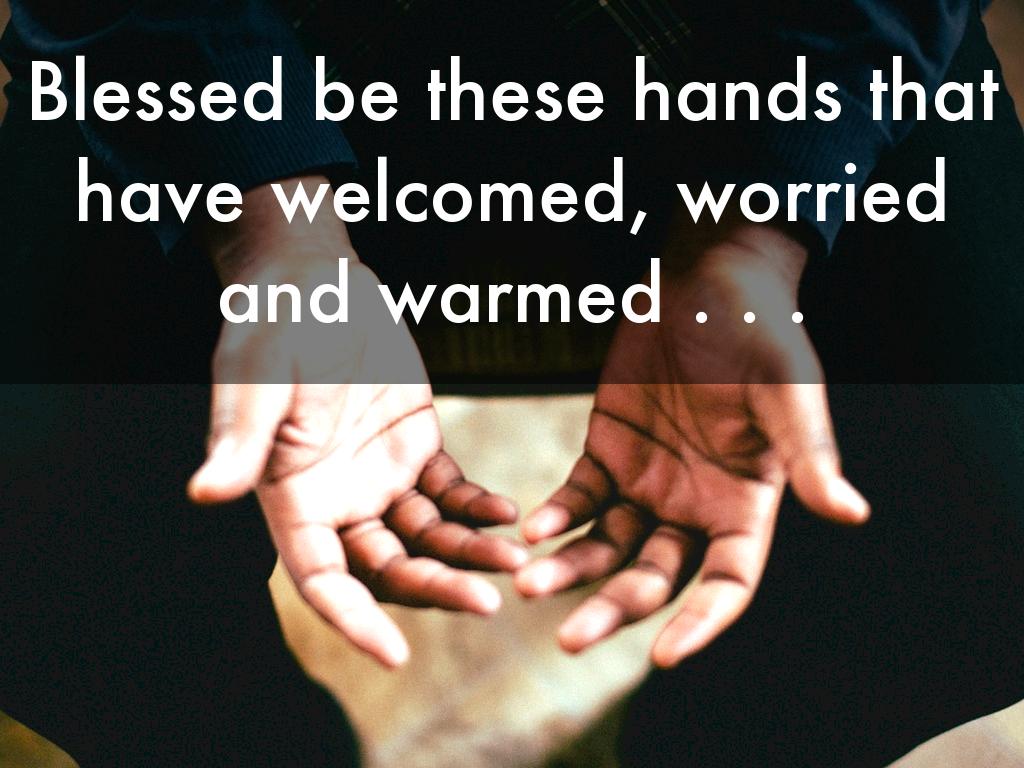Blessed be these hands that have welcomed, worried and warmed . . .