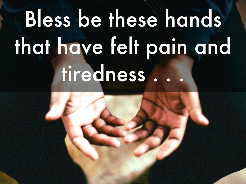 Bless be these hands that have felt pain and tiredness . . .
