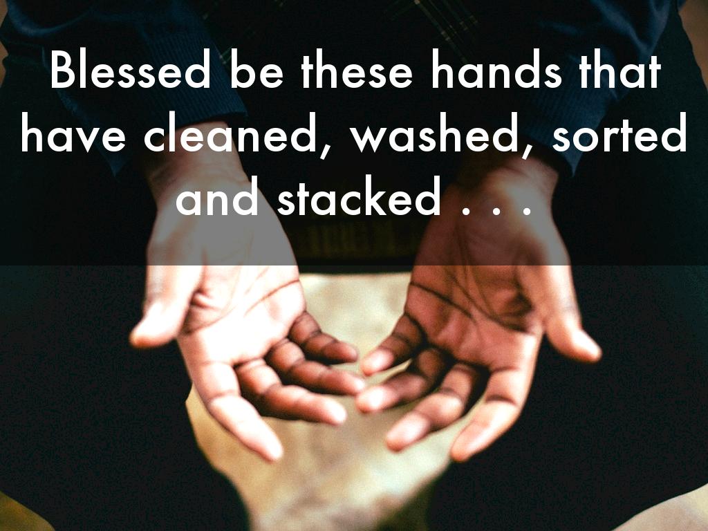 Blessed be these hands that have cleaned, washed, sorted and stacked . . .
