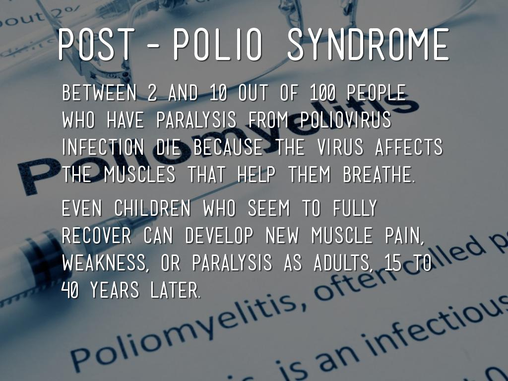 Even children who seem to fully recover can develop new muscle pain, weakness, or paralysis as adults, 15 to 40 years later.