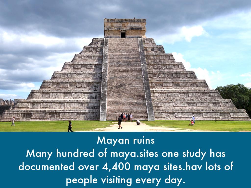Many hundred of maya.sites one study has documented over 4,400 maya sites.hav lots of people visiting every day.