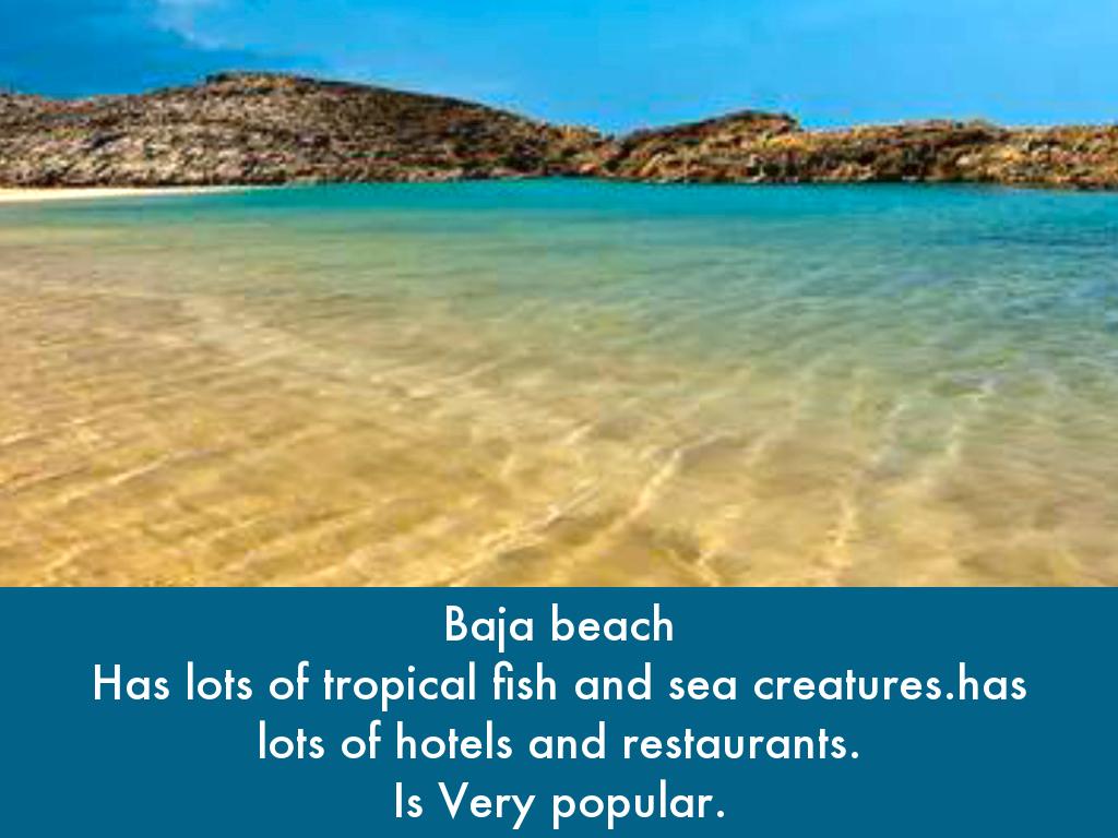 Has lots of tropical fish and sea creatures.has lots of hotels and restaurants.