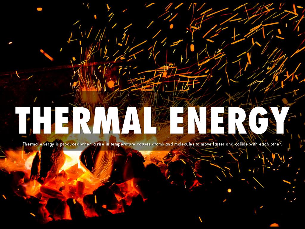 Thermal energy is produced when a rise in temperature causes atoms and molecules to move faster and collide with each other.