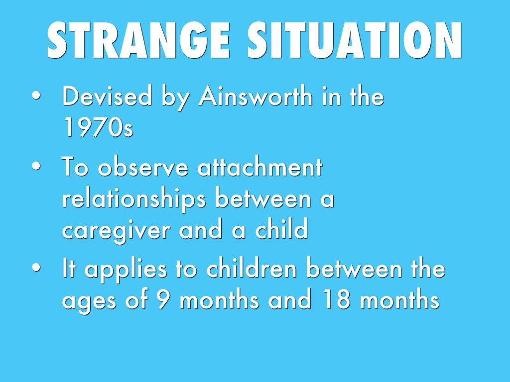 Child is observed playing for 20 minutes while caregivers and strangers enter and leave the room