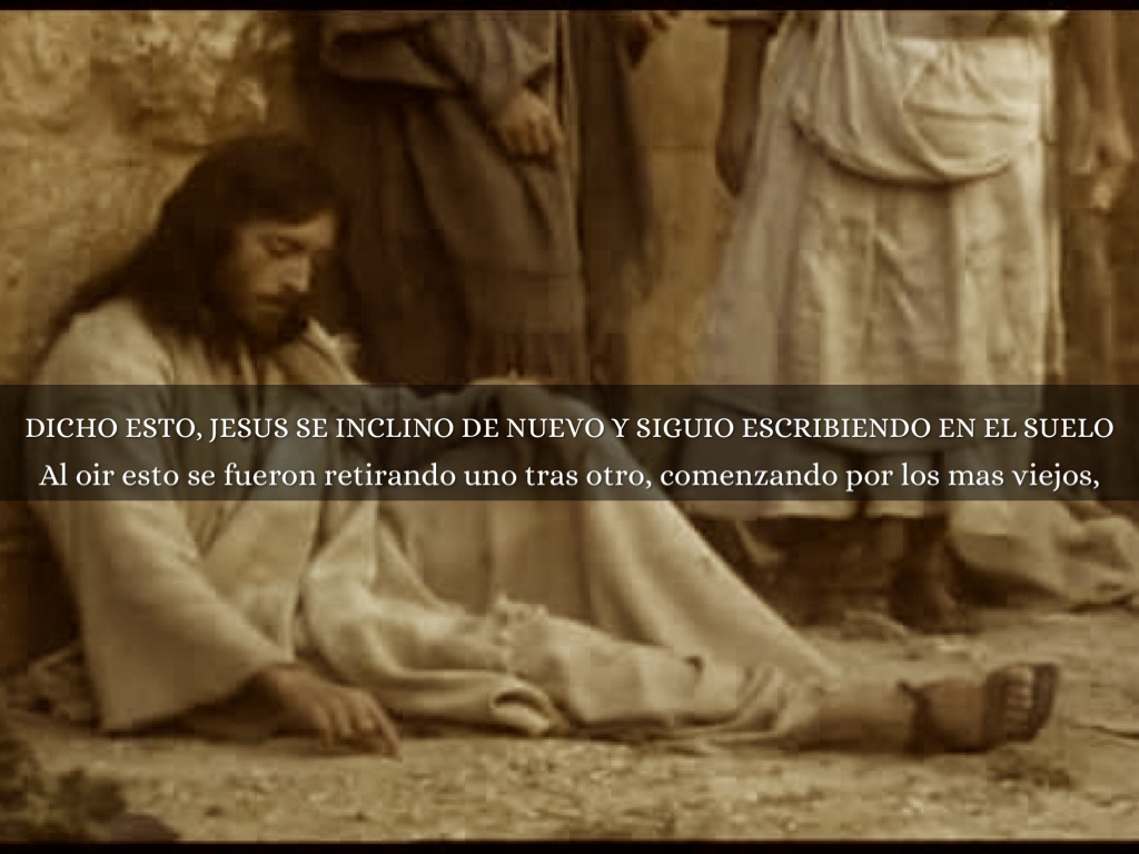 PERO JESUS SE INCLINO Y COMENZO A ESCRIBIR EN EL SUELO