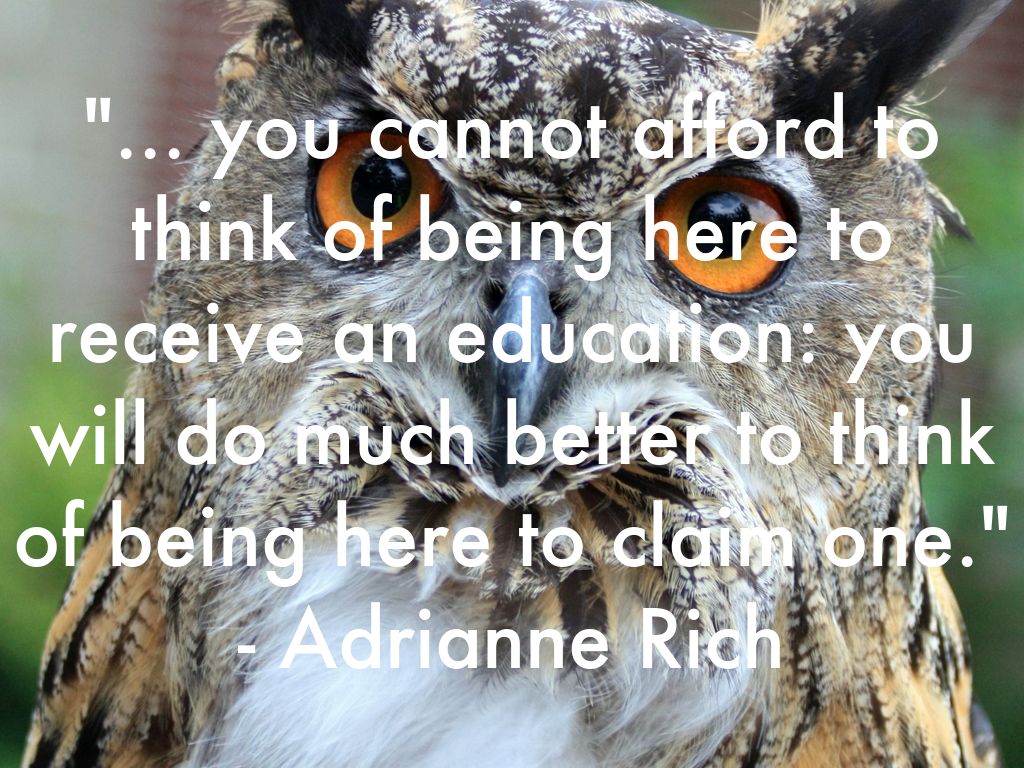 "... you cannot afford to think of being here to receive an education: you will do much better to think of being here to claim one."