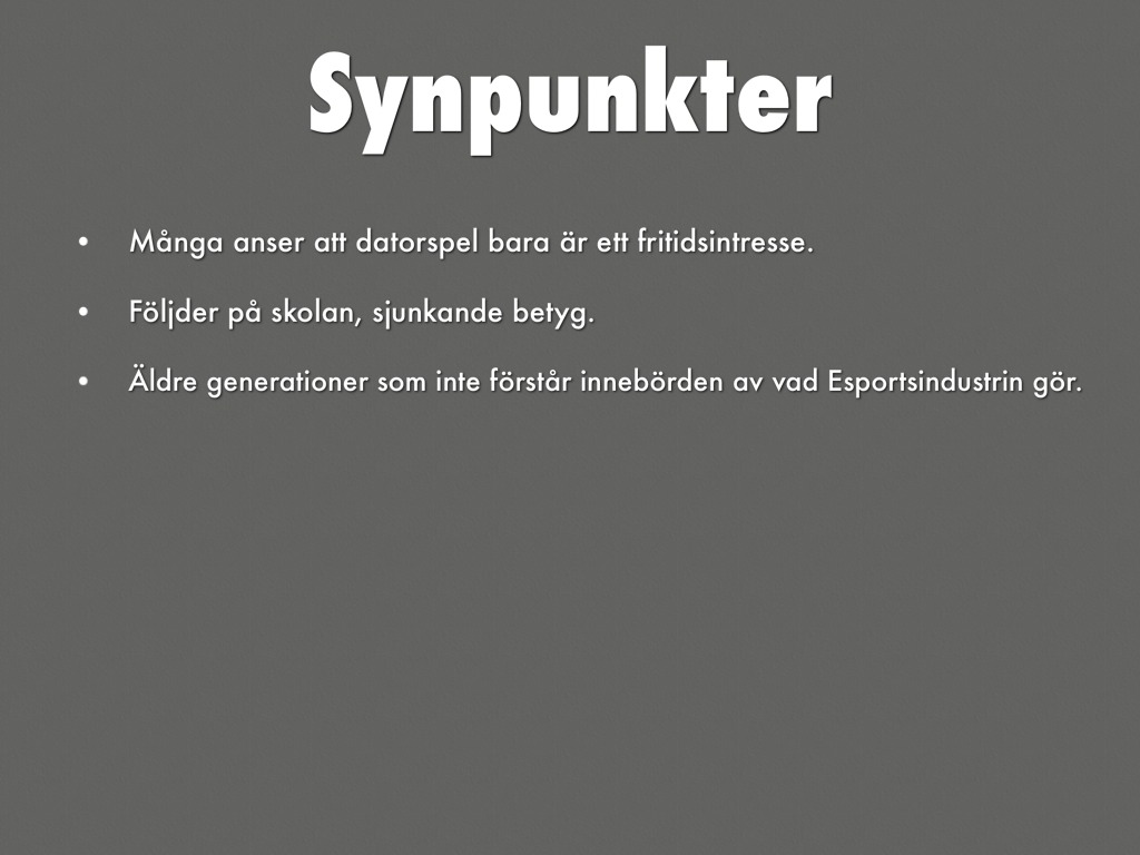 Äldre generationer som inte förstår innebörden av vad Esportsindustrin gör.