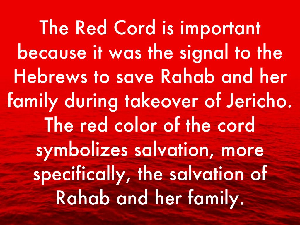 The Red Cord is important because it was the signal to the Hebrews to save Rahab and her family during takeover of Jericho. The red color of the cord symbolizes salvation, more specifically, the salvation of Rahab and her family.