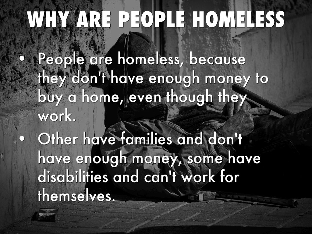 People are homeless, because they don't have enough money to buy a home, even though they work.