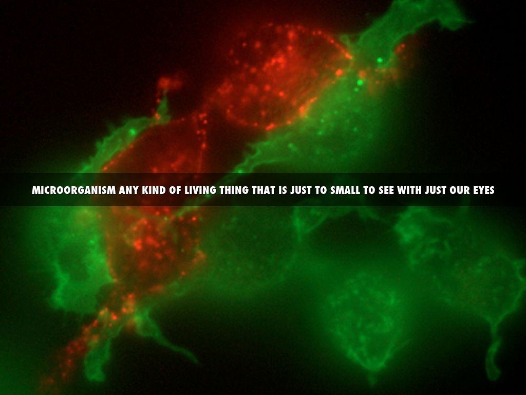 MICROORGANISM ANY KIND OF LIVING THING THAT IS JUST TO SMALL TO SEE WITH JUST OUR EYES